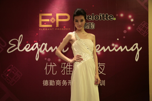 随后EP雅莹一段气质优雅的礼仪走秀把老师讲解的形象礼仪现场展示。身着EP雅莹2010秋冬系列的模特们,在德勤商务形象礼仪培训课堂现场款款而行。职场人与时尚之间的写意就此展开,这是一种商务形象礼仪的极致延伸, EP雅莹,给职业人打造了一个时尚优雅的梦想,将现场众多德勤人带入上商务与时尚跨界的奇妙旅程。