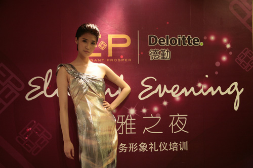 随后EP雅莹一段气质优雅的礼仪走秀把老师讲解的形象礼仪现场展示。身着EP雅莹2010秋冬系列的模特们,在德勤商务形象礼仪培训课堂现场款款而行。职场人与时尚之间的写意就此展开,这是一种商务形象礼仪的极致延伸, EP雅莹,给职业人打造了一个时尚优雅的梦想,将现场众多德勤人带入上商务与时尚跨界的奇妙旅程。