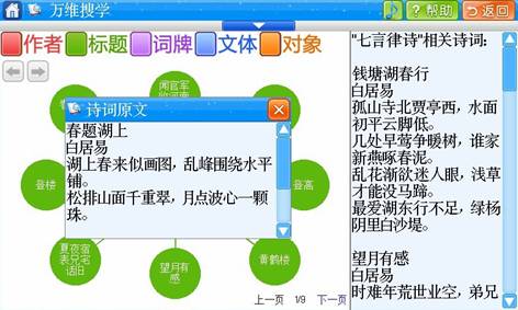 如果按文体学习,菜单下有七言律诗、五言律诗、古体诗、现代诗,还有小令、对联,样样俱全。