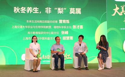 此外,发布会现场上海交通大学农业与生物学院教授、植物科学系主任张才喜,库尔勒香梨研究中心副主任张峰,上海市东医院中医科副主任医师胡慧菁等人,围绕“秋冬养生,非梨莫属”开展了圆桌论坛讲话,与观众共同分享了库尔勒香梨对饮食健康的重要作用。