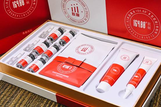 锦波生物联合中科院生物物理研究所,复旦-锦波功能蛋白联合研究中心,川大-锦波功能蛋白联合研究中心,首次成功解析出人源化III型胶原蛋白活性重复序列,其具备完整的、结构明确的三螺旋结构,和人III型胶原蛋白高活性区氨基酸序列100%匹配。且具有人Ⅲ型胶原蛋白高活性功能区特征性结构:164.88度的主体曲度。通过16倍线性重复,实现了产品的细胞黏附性为天然的人Ⅲ型胶原蛋白的183%,为猪来源胶原蛋白的7-8倍。这是迄今为止PDB国际蛋白质数据库收录的胶原蛋白结构中,唯一来自中央活性区、具有清晰三螺旋结构、高水溶性的。可以有效促进细胞自我增殖新生,达到紧致淡纹、淡斑美白、淡化黑眼圈、高效锁水、缩小毛孔、软嫩Q弹、重建屏障、修复再生的全方位年轻化功效。